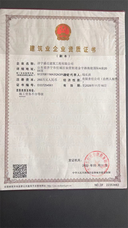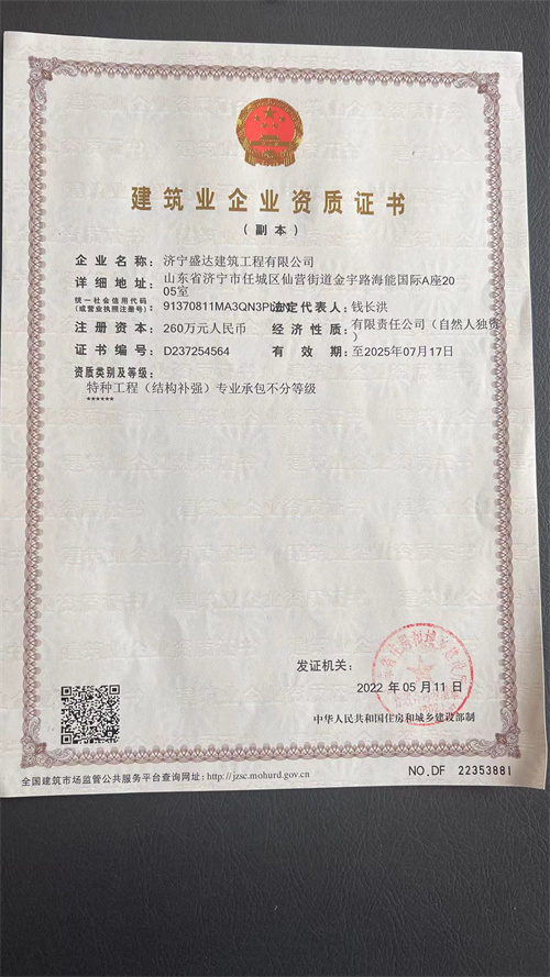濟寧盛達建筑工程有限公司是濟寧市具有加固工程專業承包、建筑工程裝飾專業承包資質建筑企業。